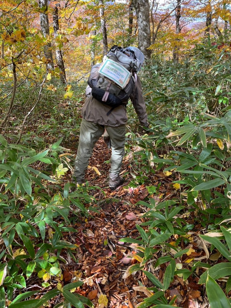 紅葉のトンネルをクリーンハイク隊は進みます。