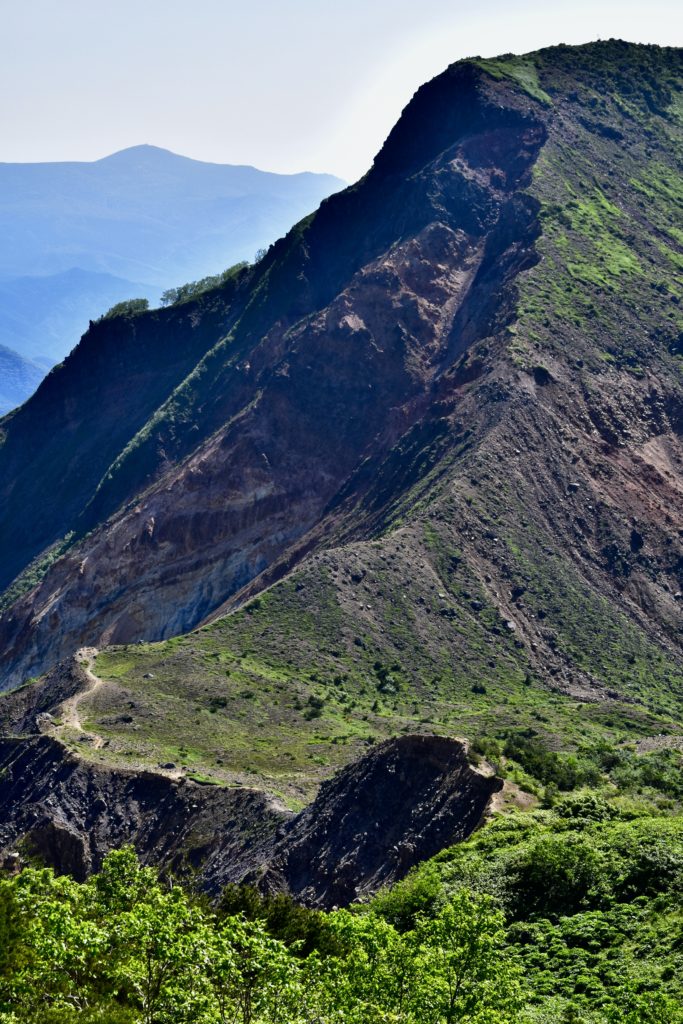 大噴火で崩れた岩肌の斜面が迫るバラエティ豊かなコースでした。楽しかったです。